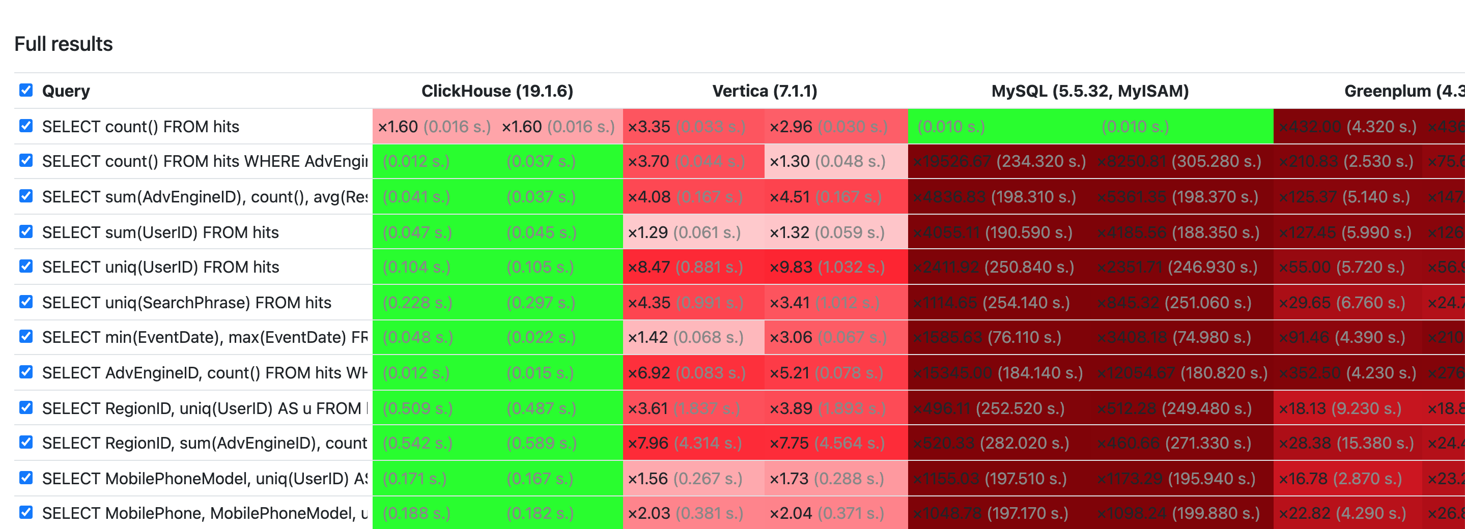 • Specialization and attention to detail: for example, they have 30+ different algorithms for GROUP BY. Best one is selected for your query.