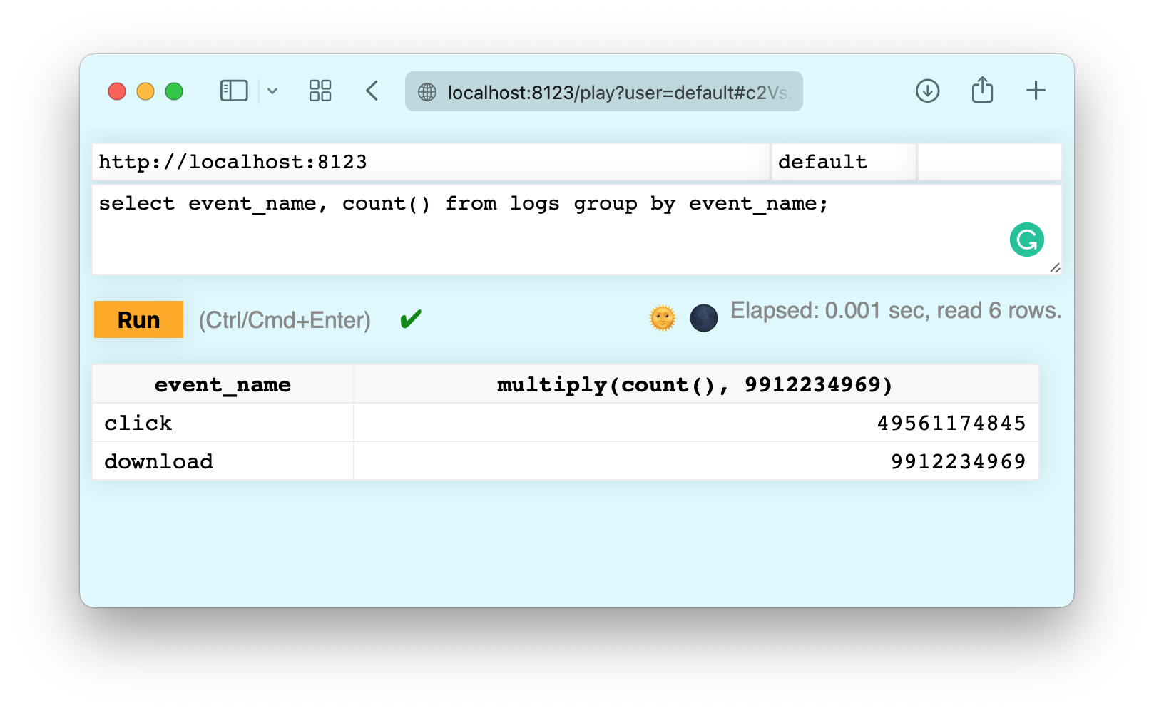Web UI can be accessed here: http://localhost:8123/play.