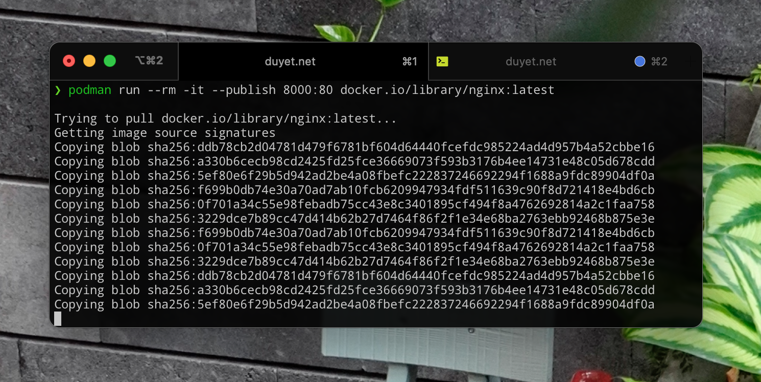 podman run --rm -it --publish 8000:80 docker.io/library/nginx:latest