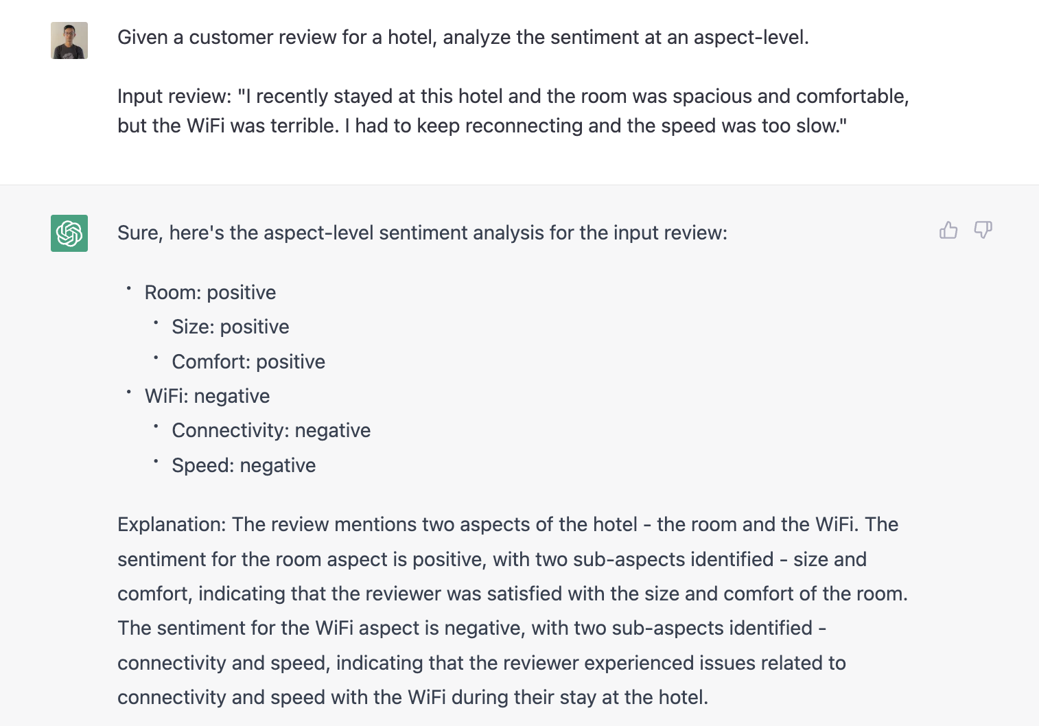 Aspect-level sentiment analysis goes beyond analyzing the sentiment of the entire text and delves into specific aspects or features of a product or service. For instance, when analyzing hotel reviews, you might want to determine the sentiment of the food, the rooms, or the service. GPT makes this task much more straightforward and accurate by analyzing large amounts of text and identifying the sentiment of specific aspects.