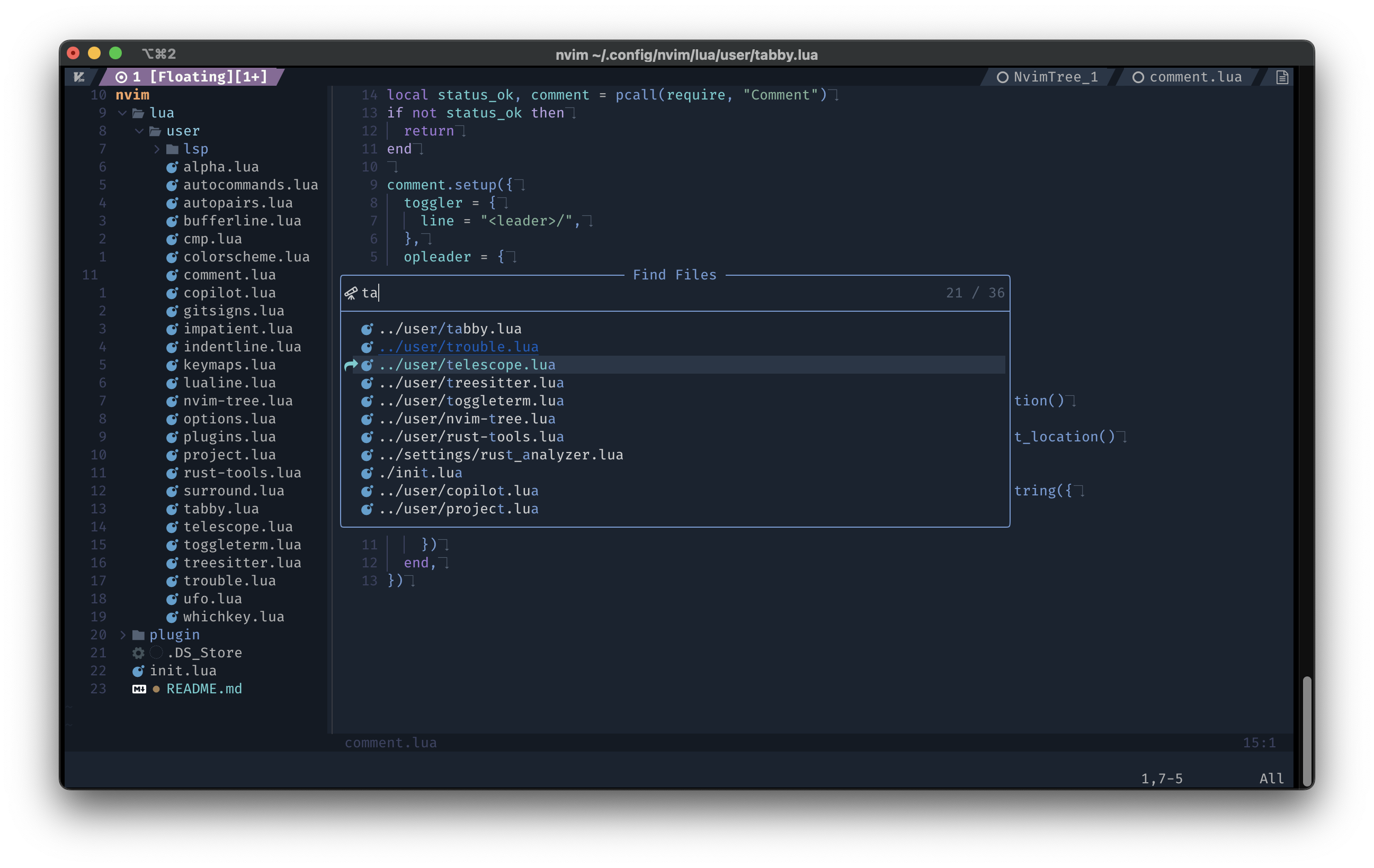 I also have to give a shoutout to nvim-tree.lua for doing an amazing job and telescope.nvim for helping me find what I need quickly and easily.
